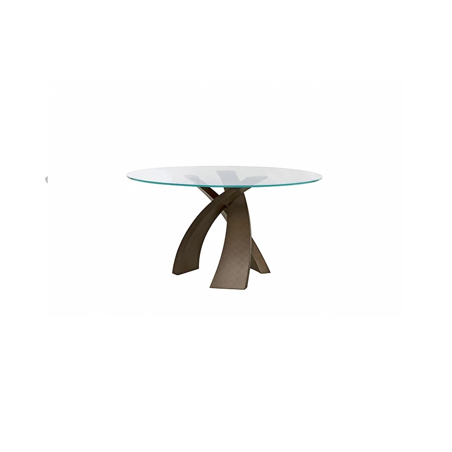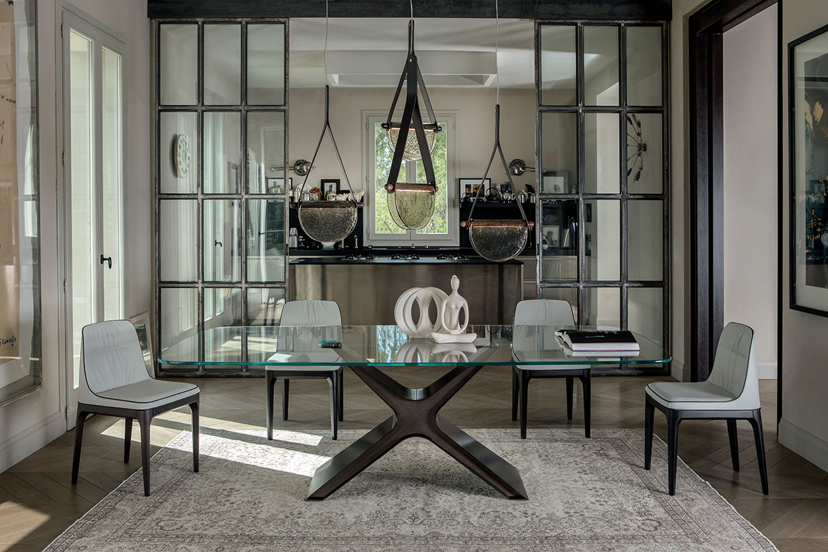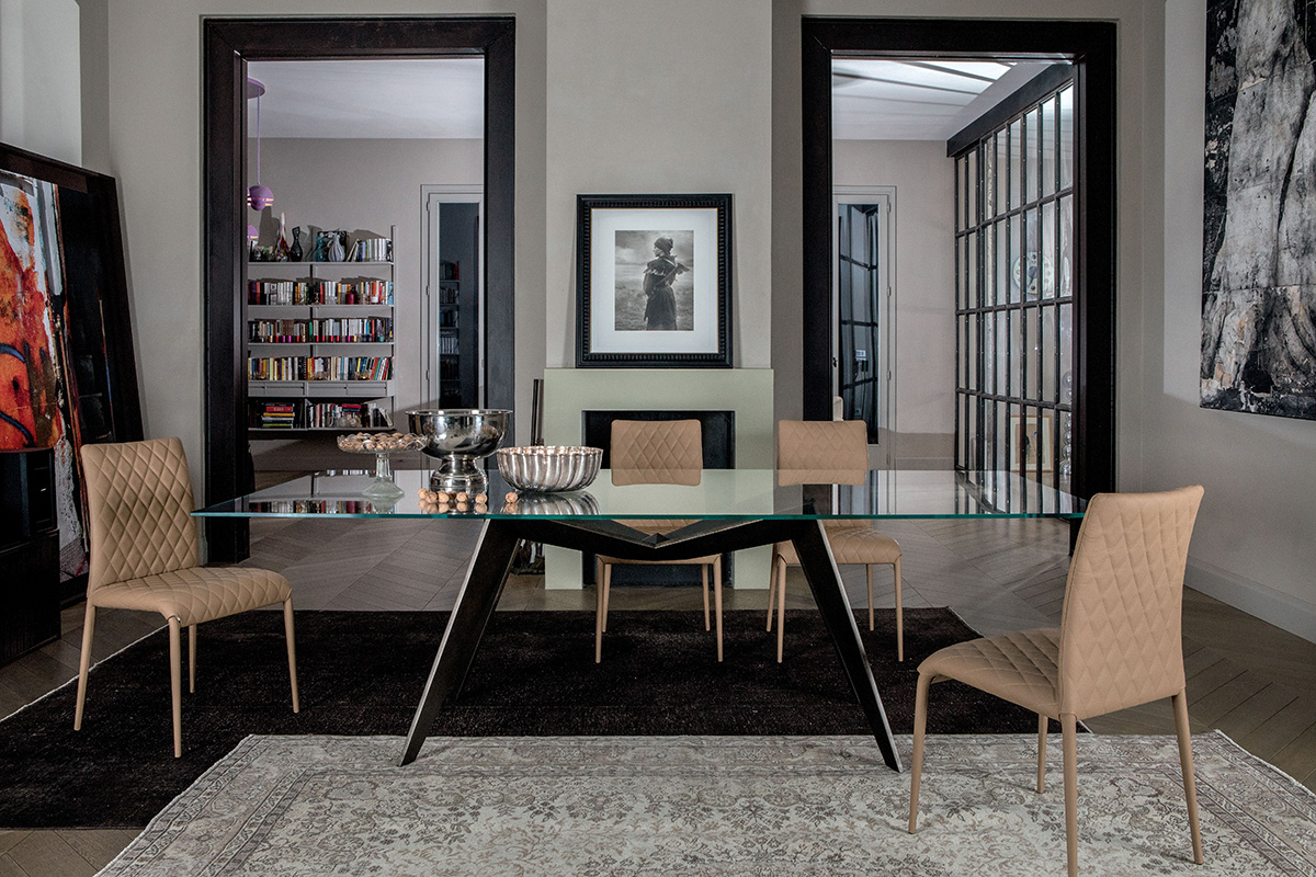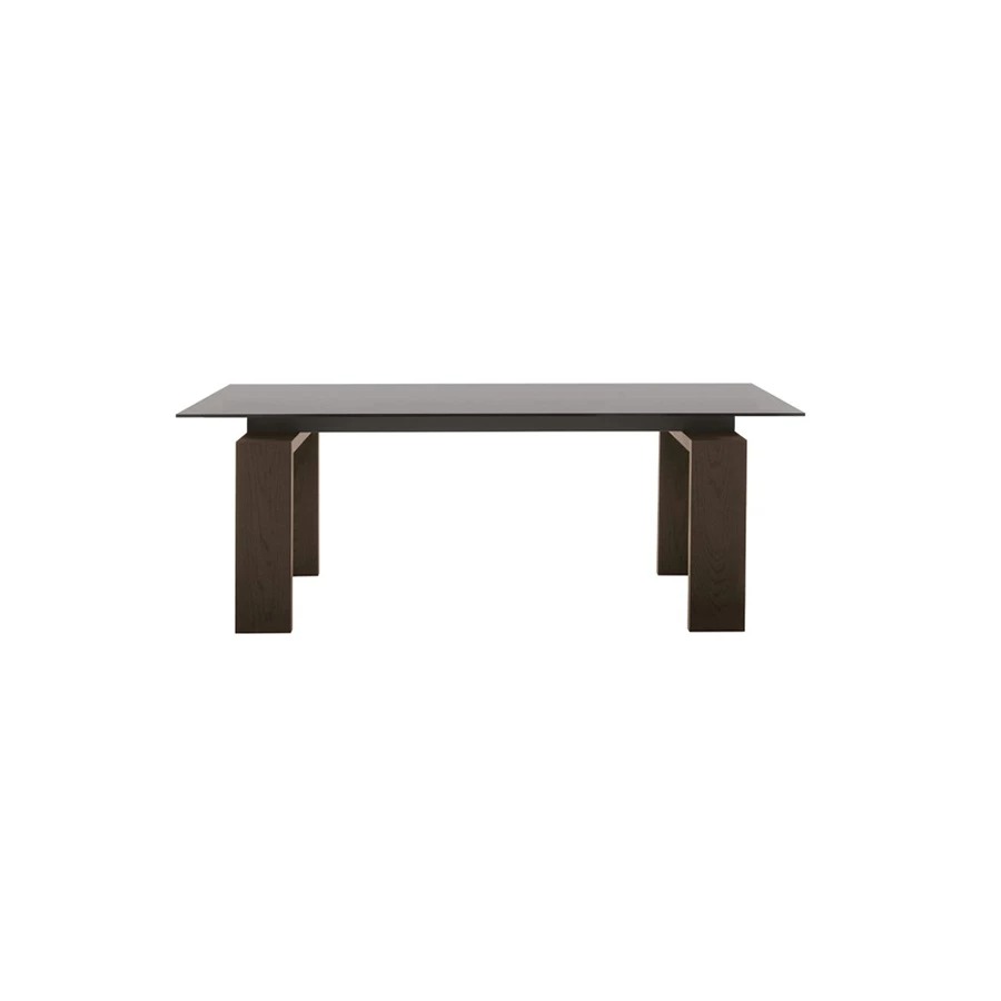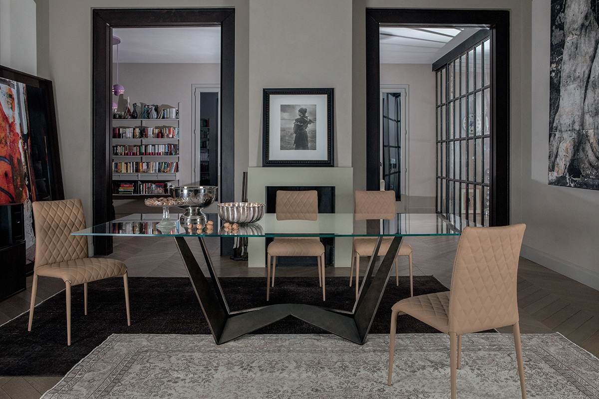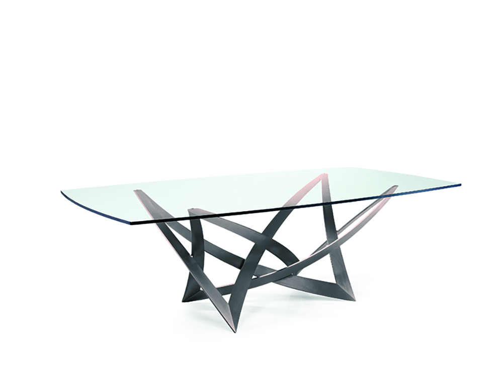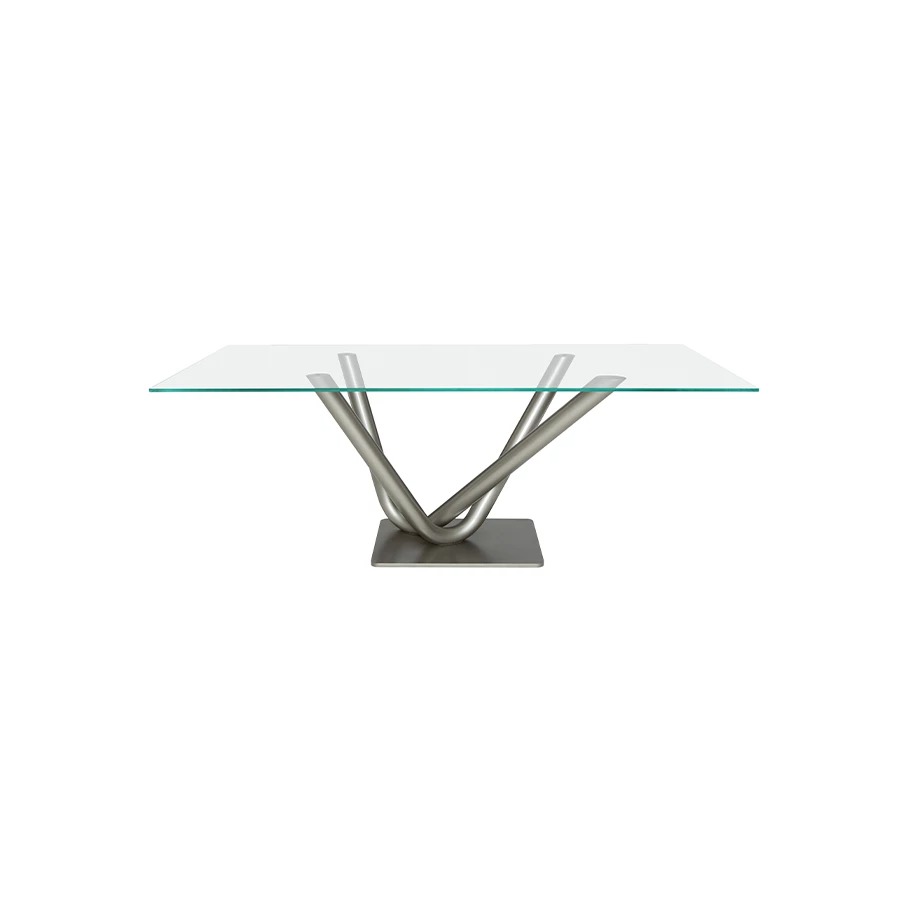 INFINITO 72 200 x 120 x 72 h Dining table with base in brushed stainless steel. Glass top 15 mm ...