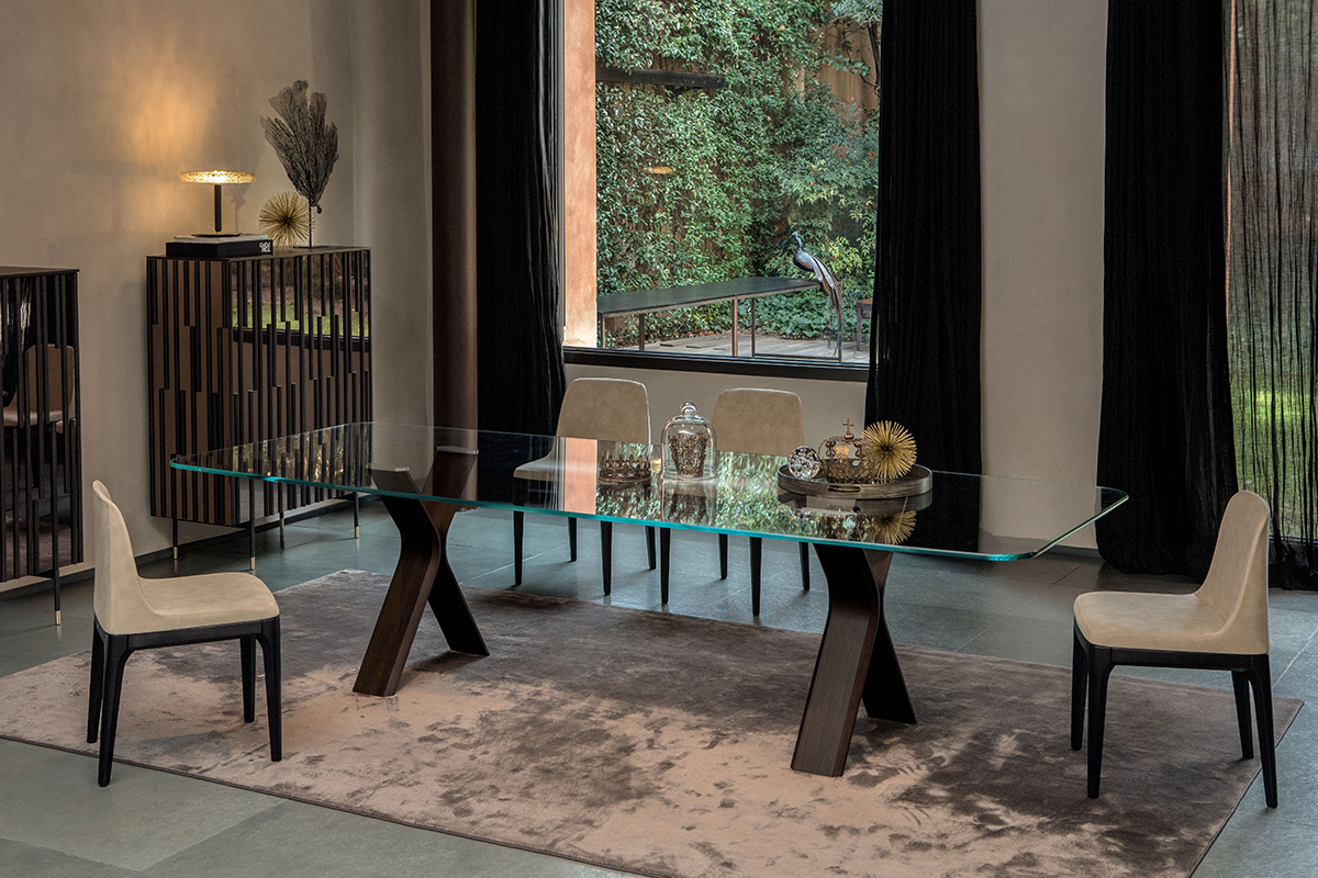 STARTING PRICE: AED 19,654/- SIZE: L200 x D120 x H75cm TOP: GLASS, WOOD