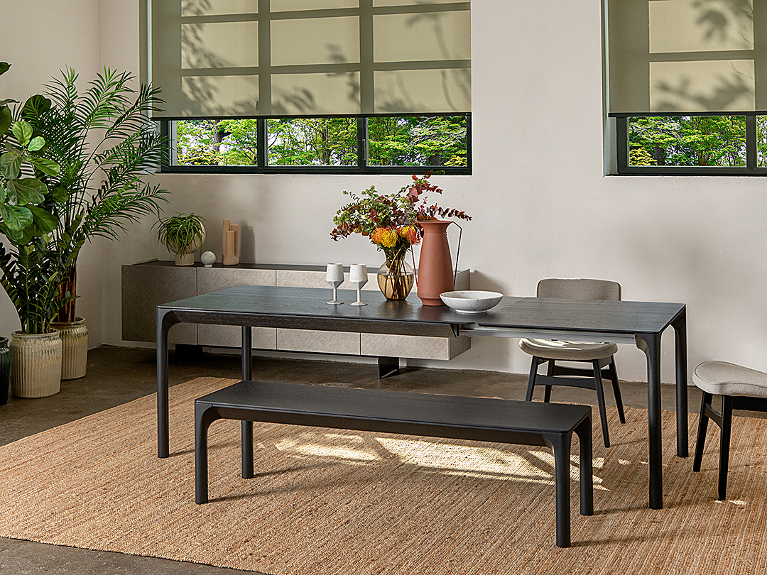 DIMENSIONS: 180 (230) (280) x D 100 x H 75 cm. LEGS AVAILABLE IN WOOD STARTING PRICE: AED 14,600