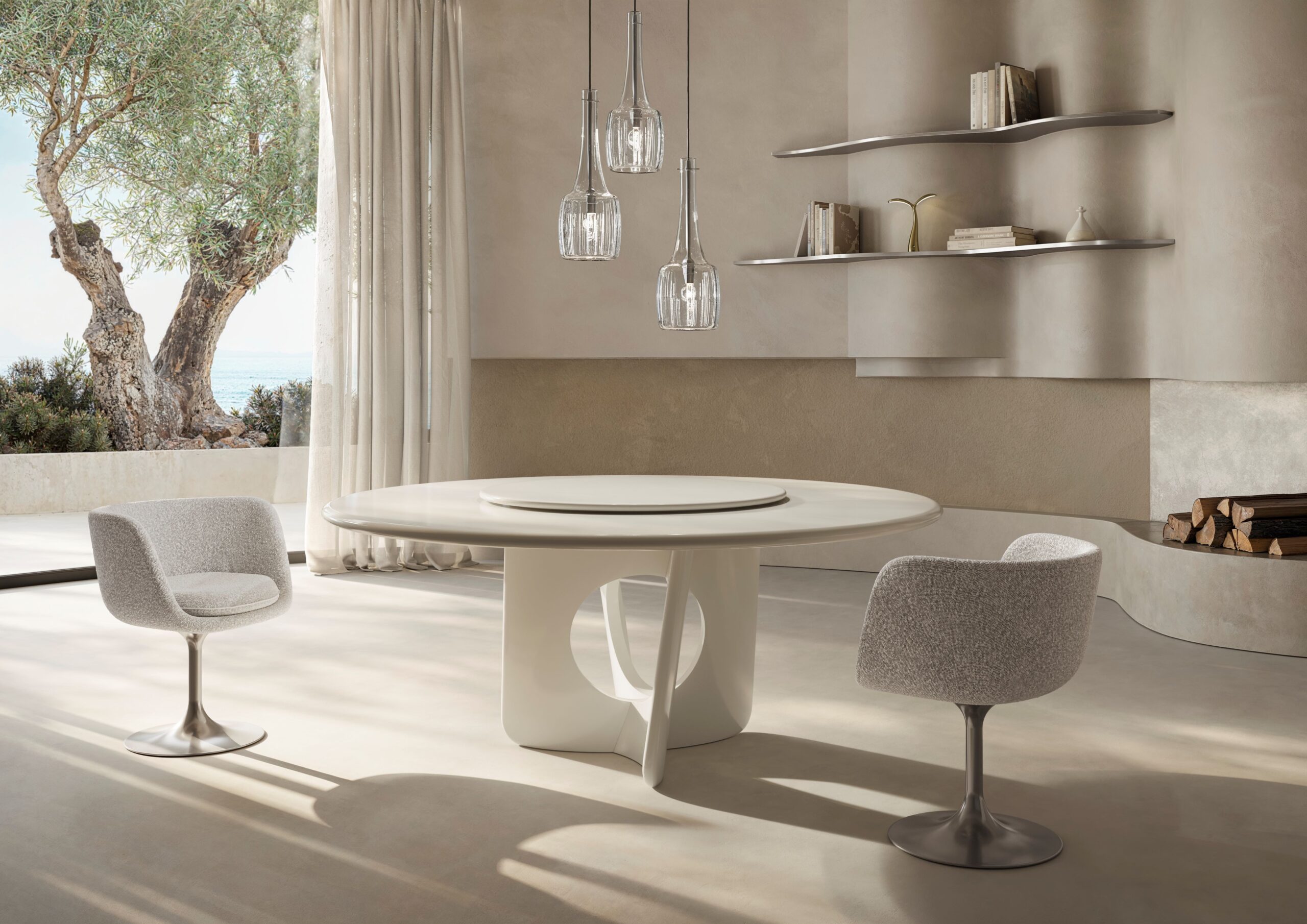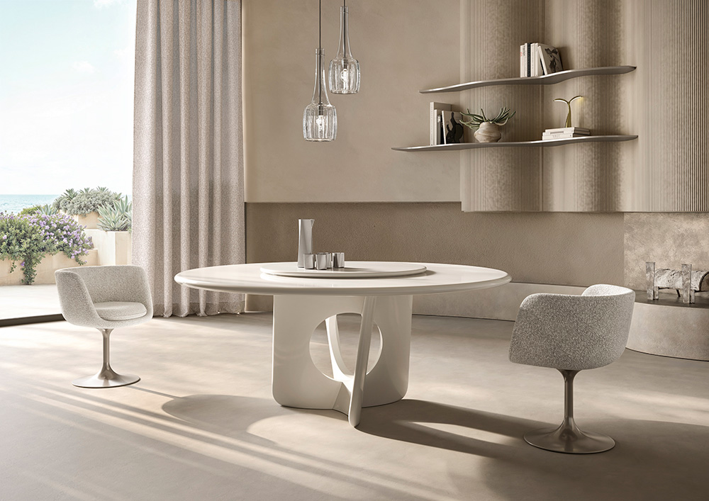 TADAO 1515-III DINING TABLE MARBLE STARTING SIZE 110 ø x 74 WITH LAZY SUZAN 50 ø AED 85,470/-